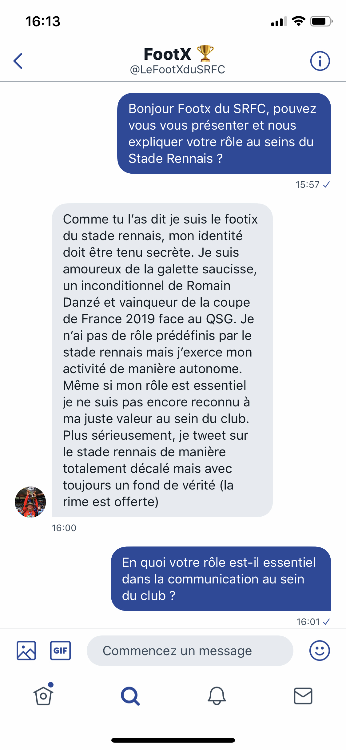 J’ai donc eu le plaisir de pouvoir poser 3 questions au compte FootXduSRFC sur le réseau social Twitter. Il est très actif sur son compte et possède plus de 10.000 followers. Le club l’a même déjà invité à assister au match plusieurs fois en compagnie d’autres « influenceurs » du club.